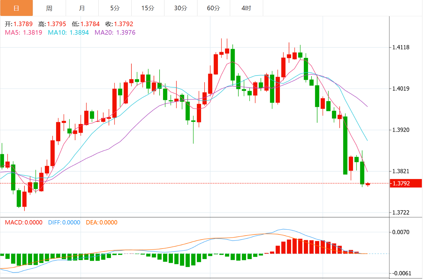 周四亚盘,美元/加元徘徊于1.3792附近,日内上涨0.01%。加元在周三对美元上涨0.4%。加元在疲软的美元面前逐渐走强,测试11周高点。连续第三次美联储降息,加拿大央行未作利率调整,支撑了加元。