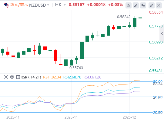 然而,在美联储主席鲍威尔会后新闻发布会上的言论后,投资者对进一步的削减仍抱有希望。鲍威尔表示,美国劳动力市场存在显着下行风险,美联储不希望其政策压低就业增长。交易员反应迅速,现已预计2026年将再降两次息。这一趋势,加上市场积极的情绪,持续削弱了避险美元的表现,反而让被认为风险更高的纽元受益。