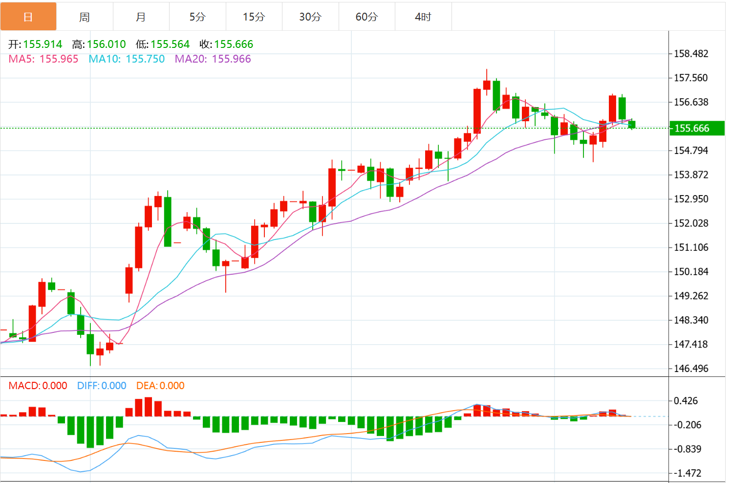 技术分析:美元/日元可能在下降通道的阻力突破点附近找到支撑,约在155.35