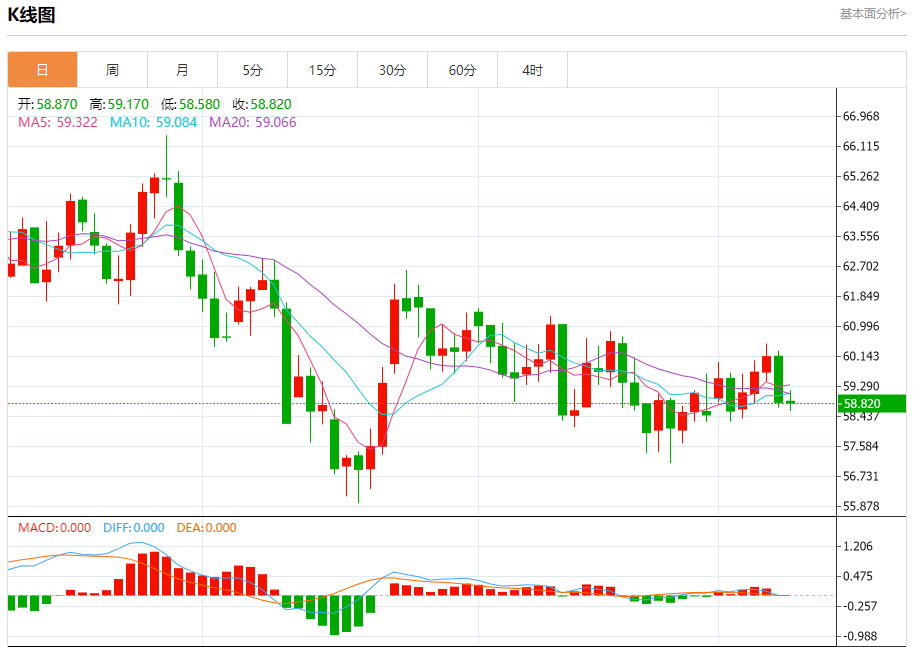 原油市场:截止北京时间21:20,美油下跌,现报58.800,跌幅0.10%。纽市盘前,(原油)价格在最后一个交易日上涨,以弥补之前的一些损失,并试图在相对强度指标上卸载一些明显的超卖条件,受短期负面技术形态(上升楔形模式)的影响,由于其交易低于EMA50,继续存在负面压力,降低了未来一段时间价格回升的机会。