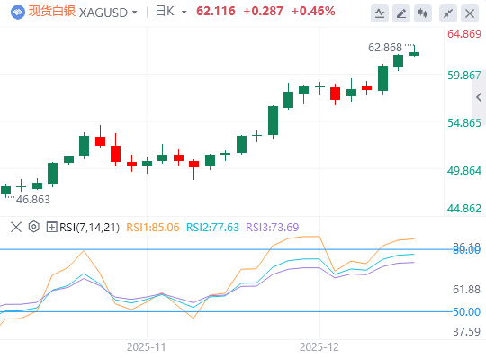 12月11日,周四亚市盘中,白银价格回落至接近62.00美元的水平。此前早些时候,白银价格曾一路飙升,创下62.87美元的历史新高。尽管白金的反弹在此时遭遇了暂时阻碍,但其未来前景依然值得期待。这一积极预期的背后,是美联储周三的货币政策调整——将利率下调25个基点,降至3.50%-3.75%的区间,并且为进一步的货币宽松政策保持开放态度。