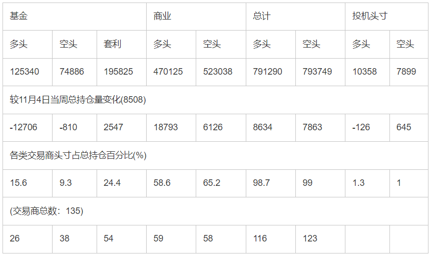 截止11月10日当周洲际交易所(欧洲)原油期货分类持仓报告: