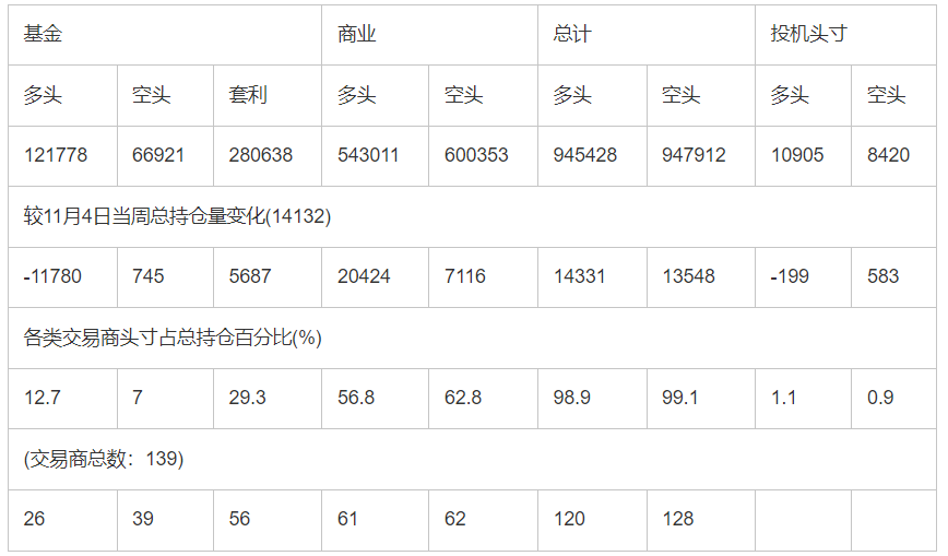 截止11月10日当周洲际交易所(欧洲)原油期货和期权分类持仓报告: